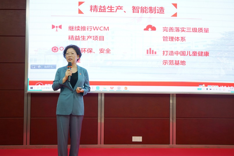 刘景萍董事长引用席大大总书记在2022年博鳌亚洲论坛上的重要讲话勉励全体与会人员,在海南自贸港建设的机遇期,认真学习贯彻落实省第八次党代会精神,坚持党建引领企业发展,将菠菜导航药业集团打造成中国儿童健康领军企业。