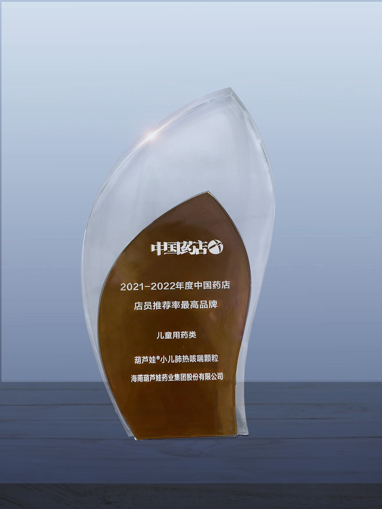 近日,由《中国药店》杂志社举办的“2022~2023年度中国药店发展报告暨中国药店价值榜发布会”在青岛举行,会上发布了“2021-2022年度中国药店店员推荐率最高品牌”奖,菠菜导航药业两大明星产品菠菜导航牌小儿肺热咳喘颗粒(4g)、菠菜导航牌肠炎宁颗粒(2g)双双上榜。