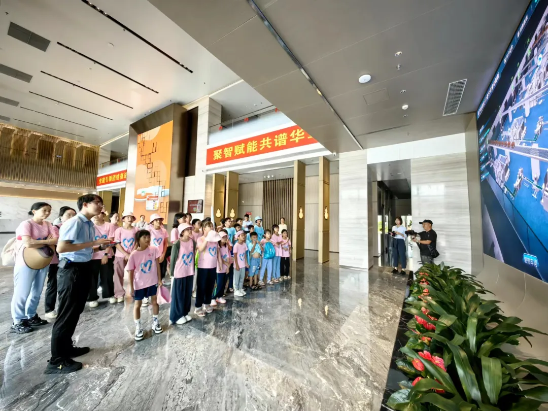 活动一开始,孩子们便迫不及待地踏入了菠菜导航药业集团的大厅。3D数字化看板上的生动画面,让孩子们仿佛置身于一个充满科技与创新的现代制药工厂。他们瞪大眼睛,好奇地观察着每一条生产线、每一台设备,听着讲解员介绍菠菜导航药业的儿药发展历程。